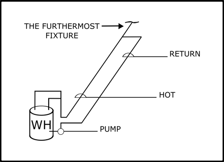 With the use of a pump and creating a return loop, hot water is delivered at all fixtures within 10-15 seconds.